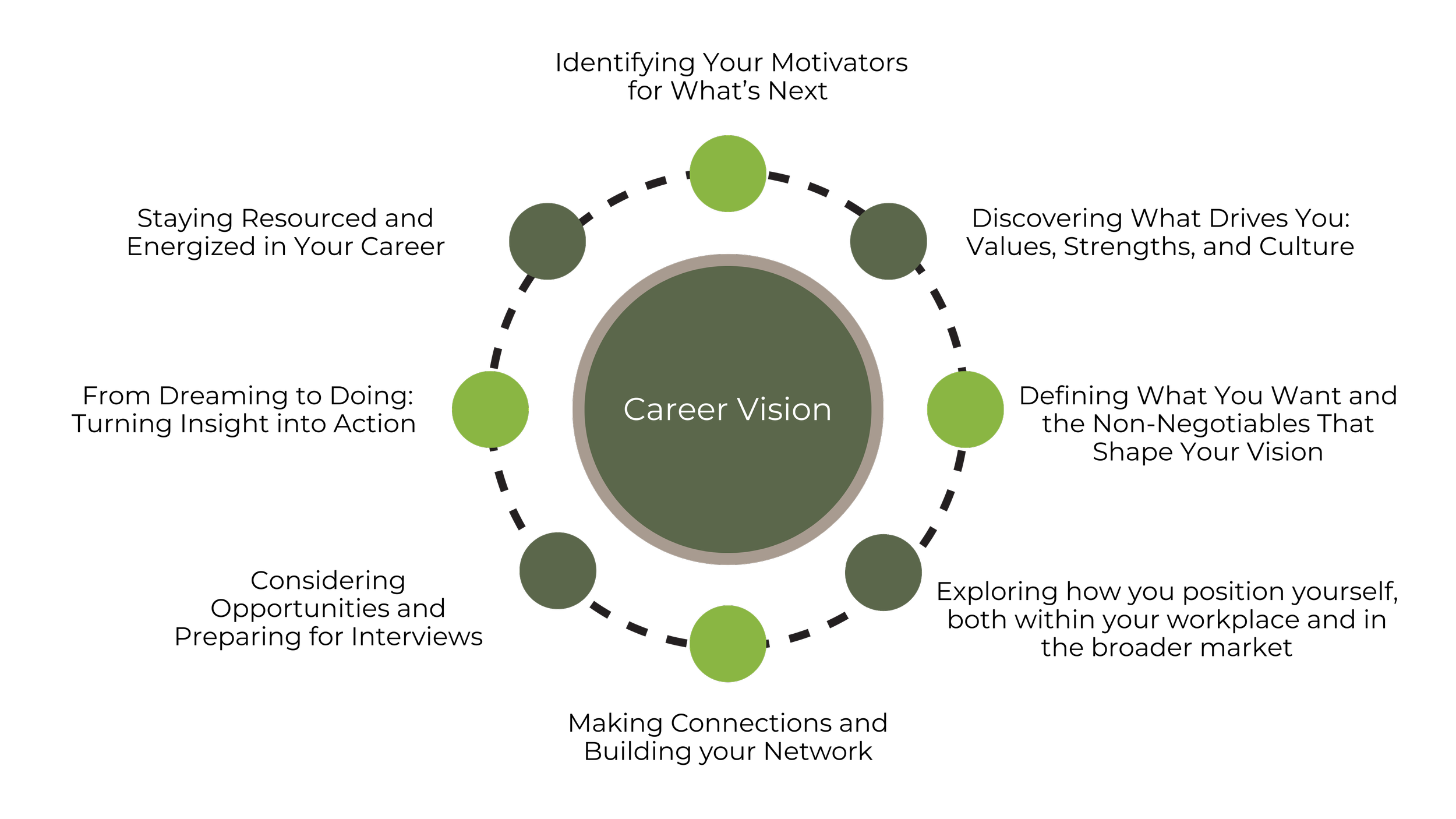 This program is for professionals who want their career to feel true to who they are and where they’re heading. Together, we create the space to sort out what you truly want, refine your vision for what’s next, and make thoughtful choices about how to get there. The work is genuinely transformational — turning insight into steady movement. And with consistent support and space to think things through, you’ll shape a career path that feels clear, grounded, and authentically yours.